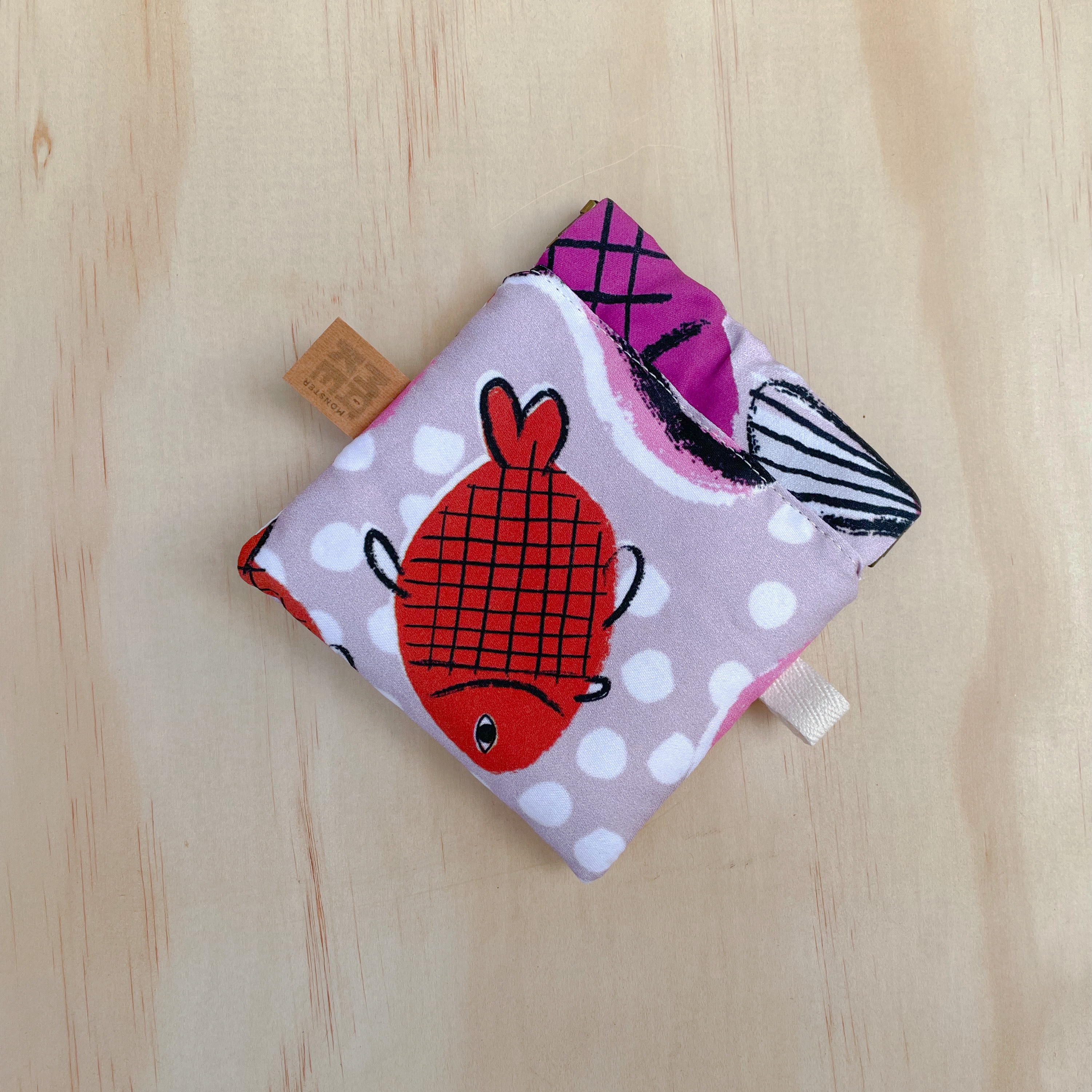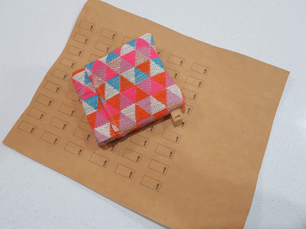 - Top left: A4 sheet showing the printed labels for sew-in.